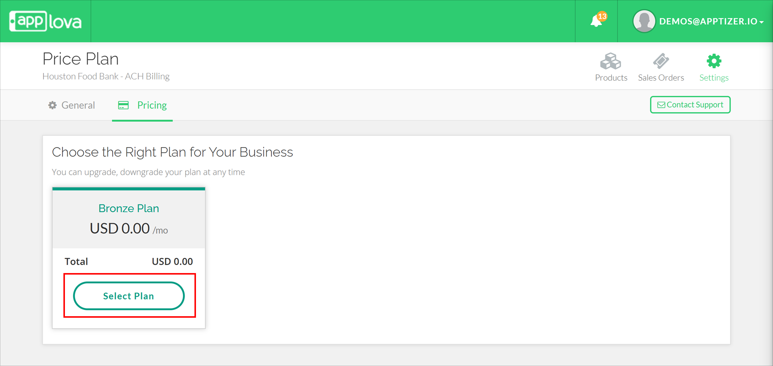 Once the account is verified by Braintree, Applova will begin charging the subscription fee from the specified bank account based on the selected billing cycle.