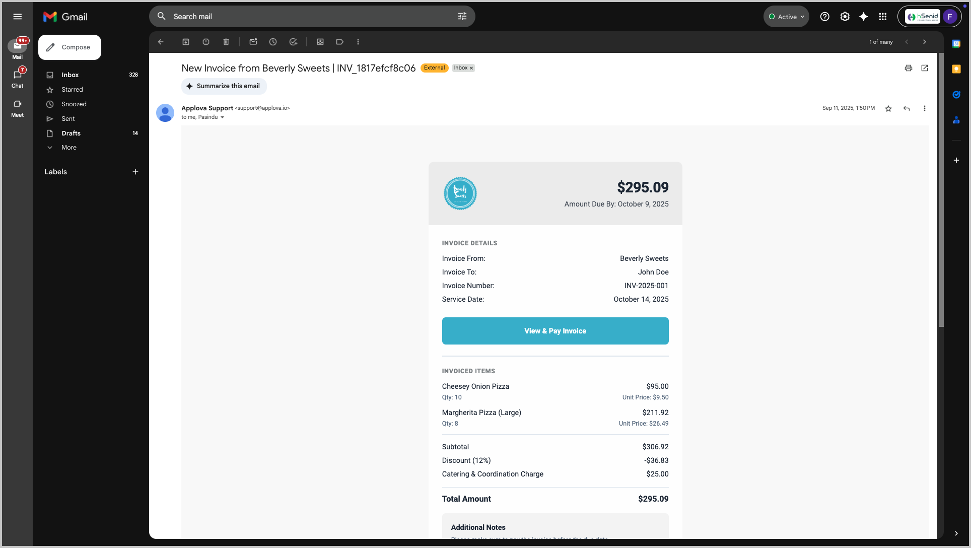 Ultimately, this allows Sunrise Catering to streamline billing for large orders, reduce errors from manual tracking, and ensure payments are collected on time with less administrative effort.