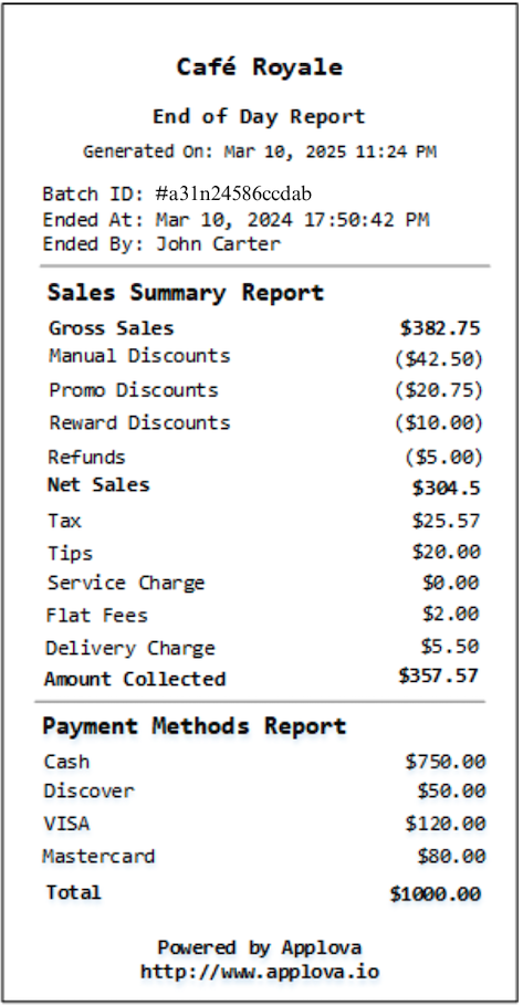 Users can view the Sales Summary for the day while on the Business Closeout Page.