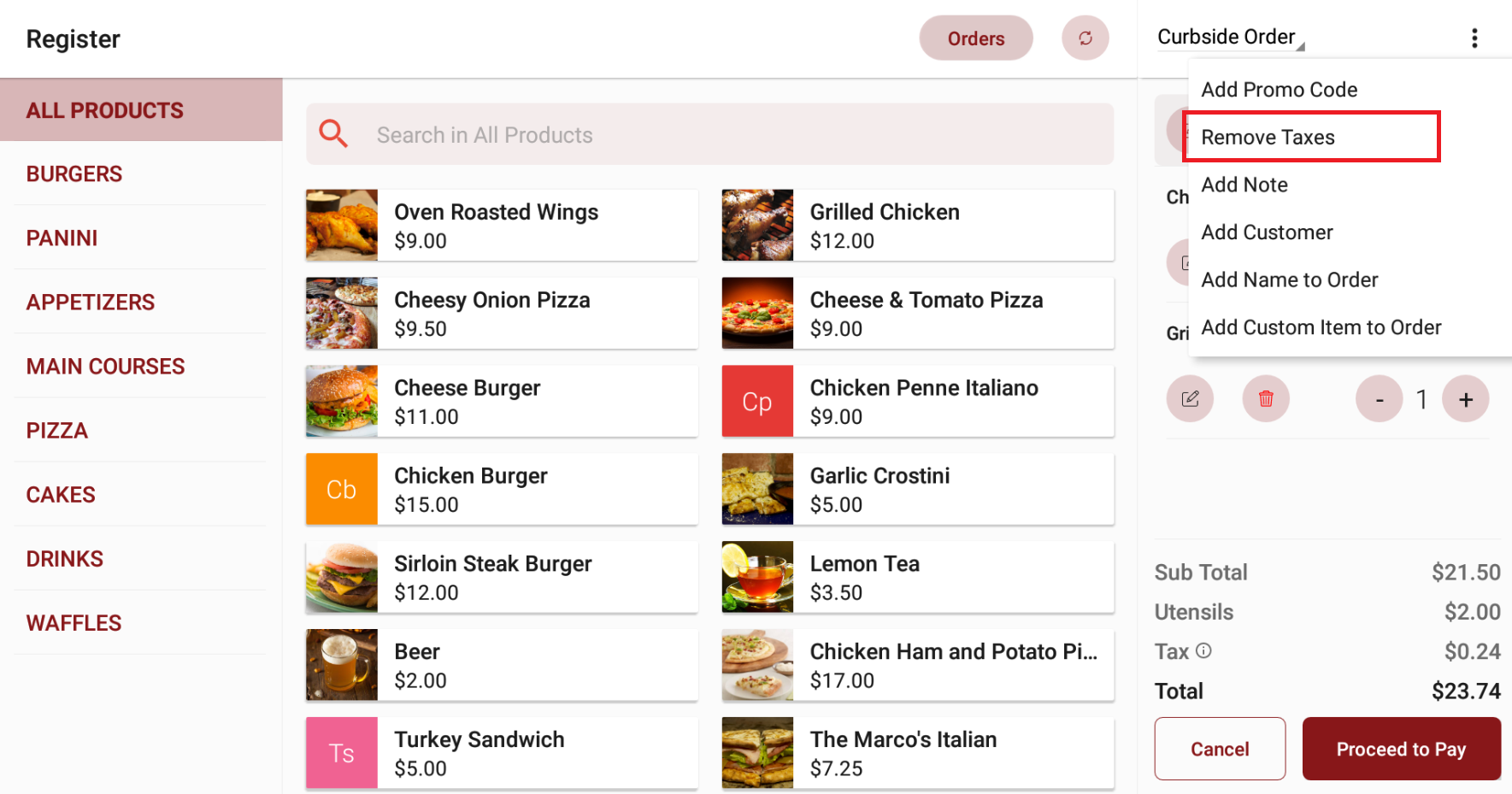 With this feature, the merchant can eliminate any applicable taxes from an order.