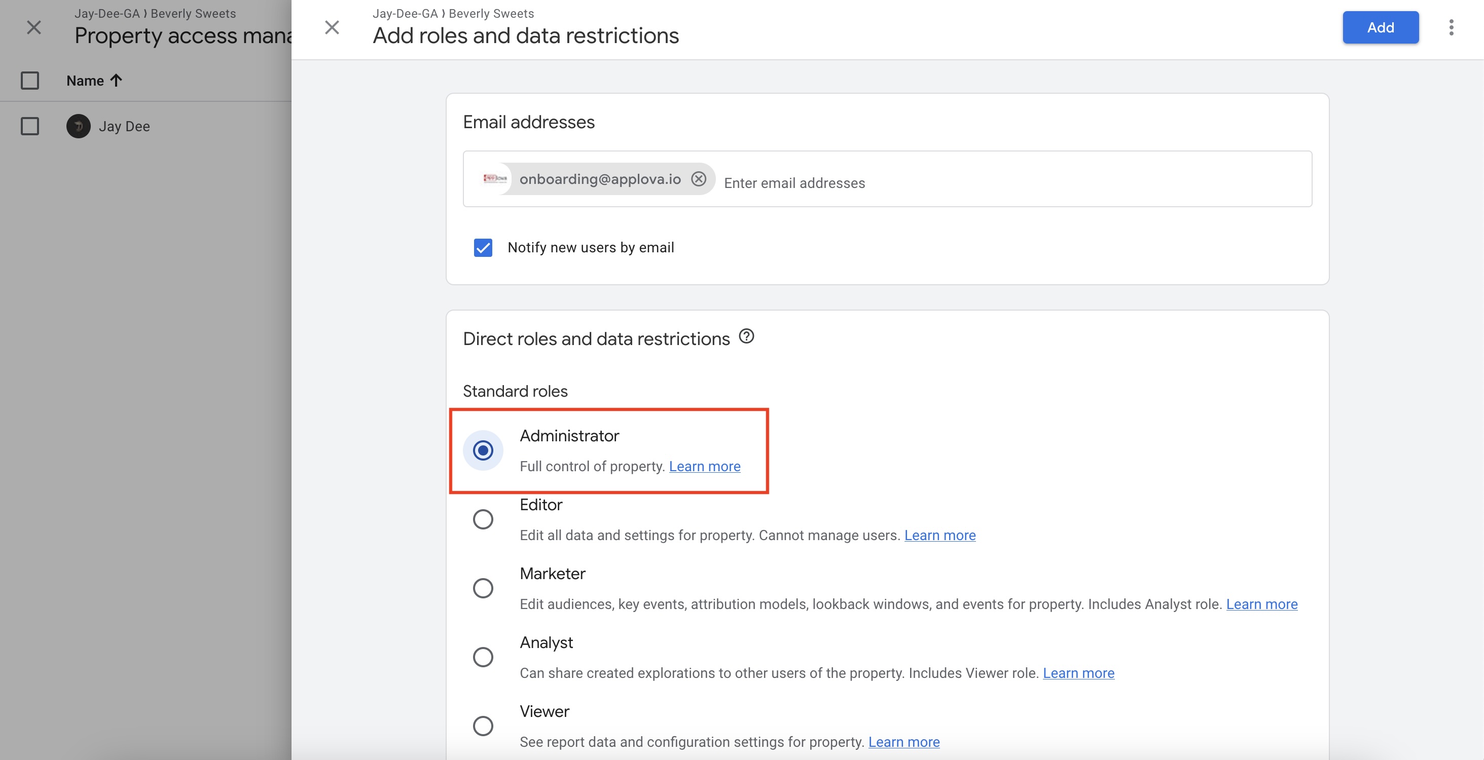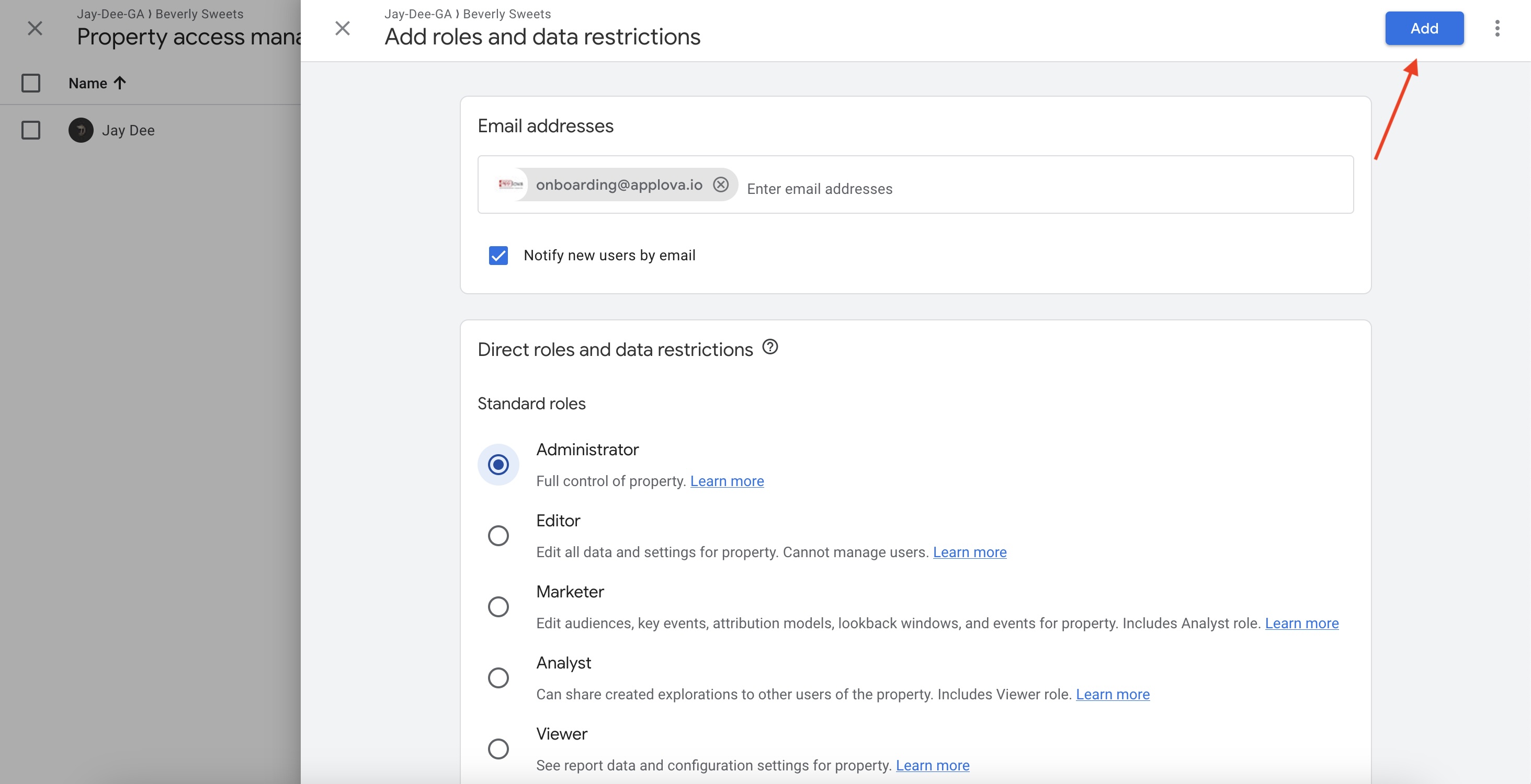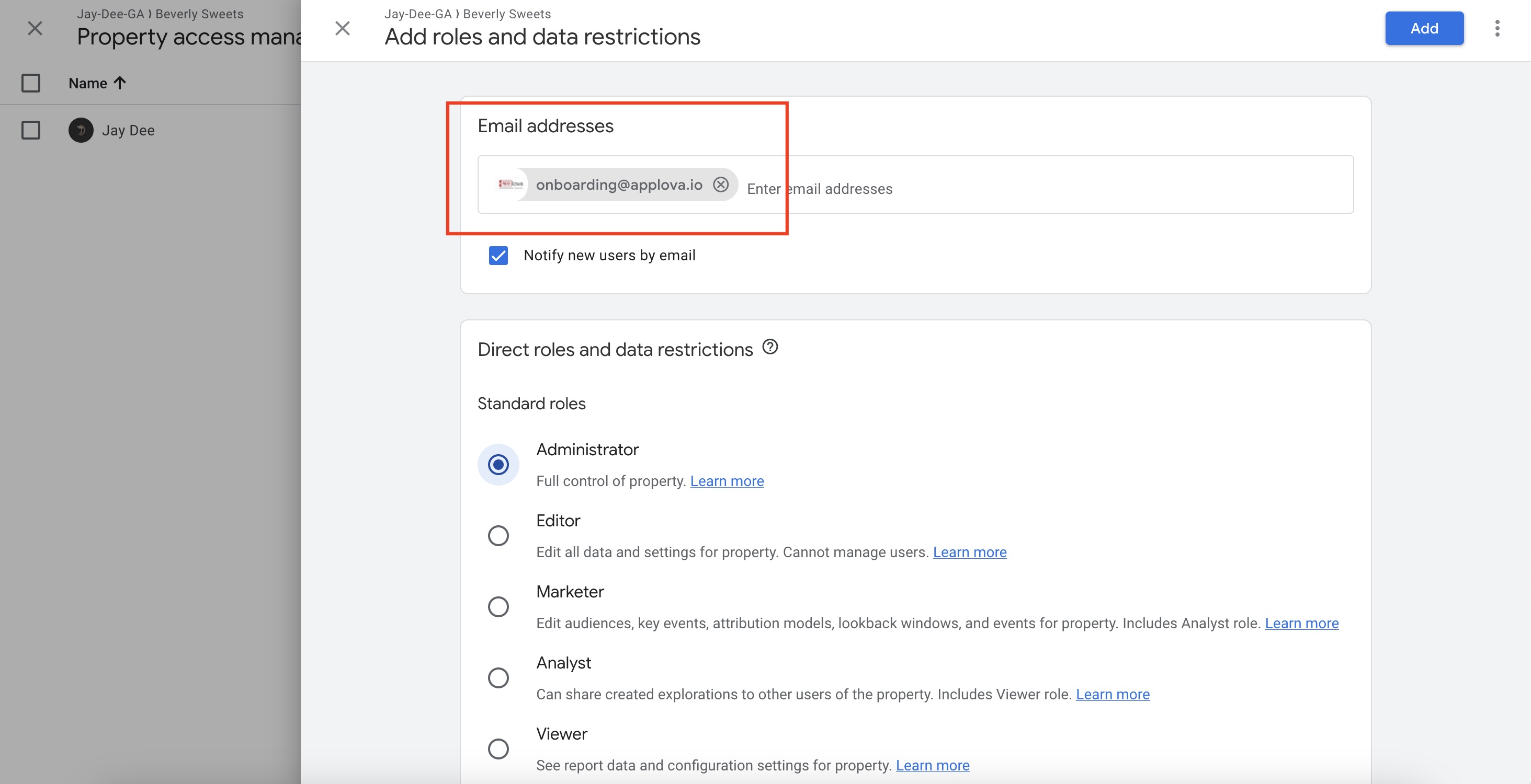How to Add Applova User as an Admin for Merchant's Google Analytics Property?
