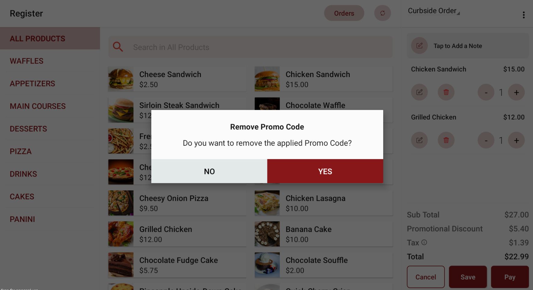 Tap "Yes" on the pop up that appears, to confirm the deletion of the Promo Code.