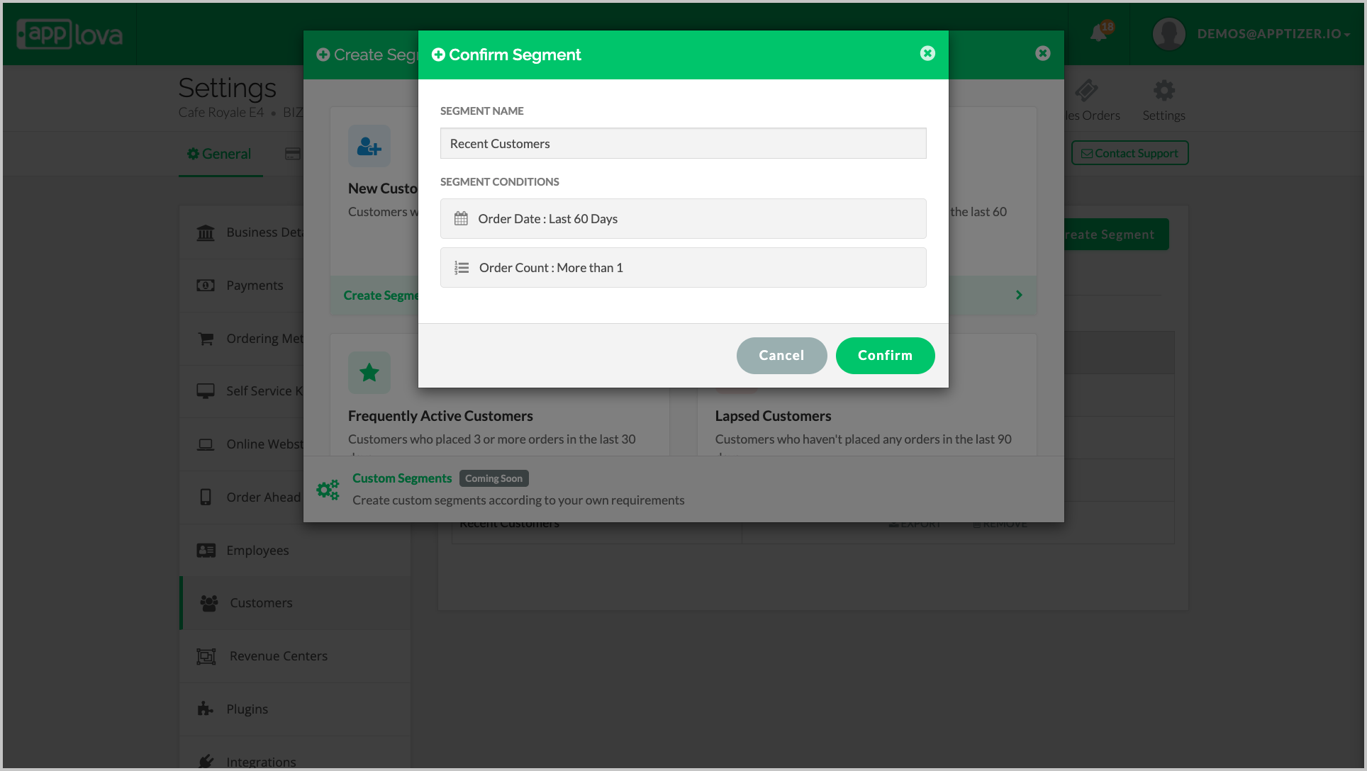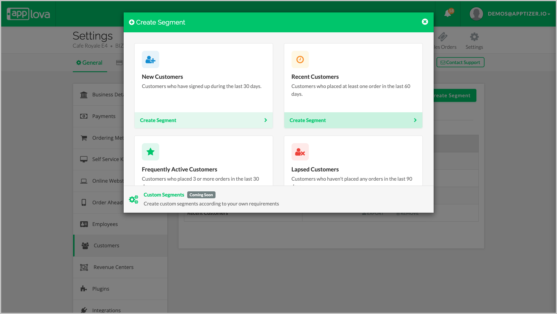 This guide how to view, create, export, remove and use customer segments in the Applova Merchant Portal to support more targeted and data-driven customer engagement.