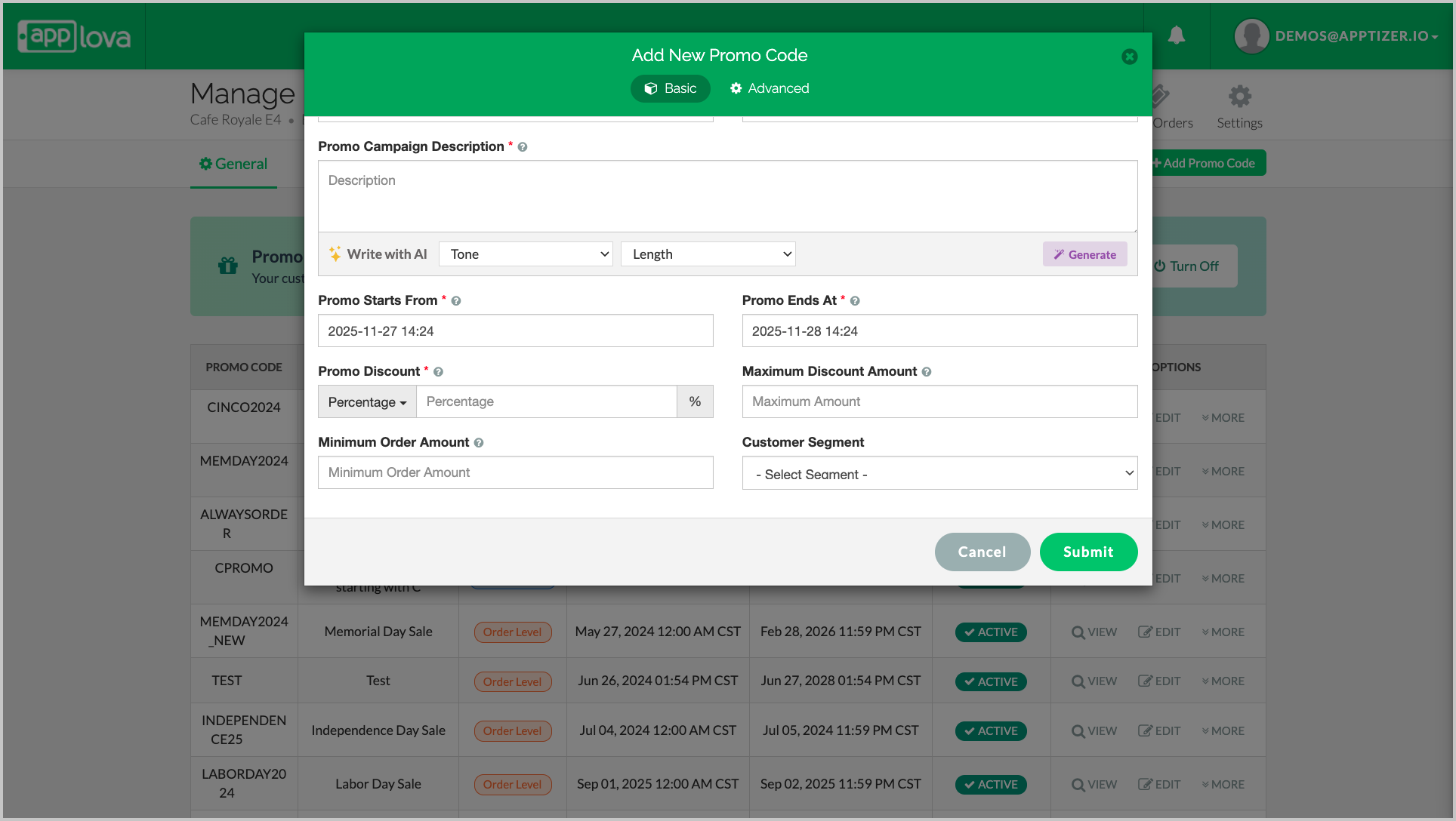 This allows Order Level Promo Codes to be targeted toward specific groups—such as loyal customers, newly joined customers, or customers who need an incentive to return—ensuring the offer is redeemed by the intended audience.