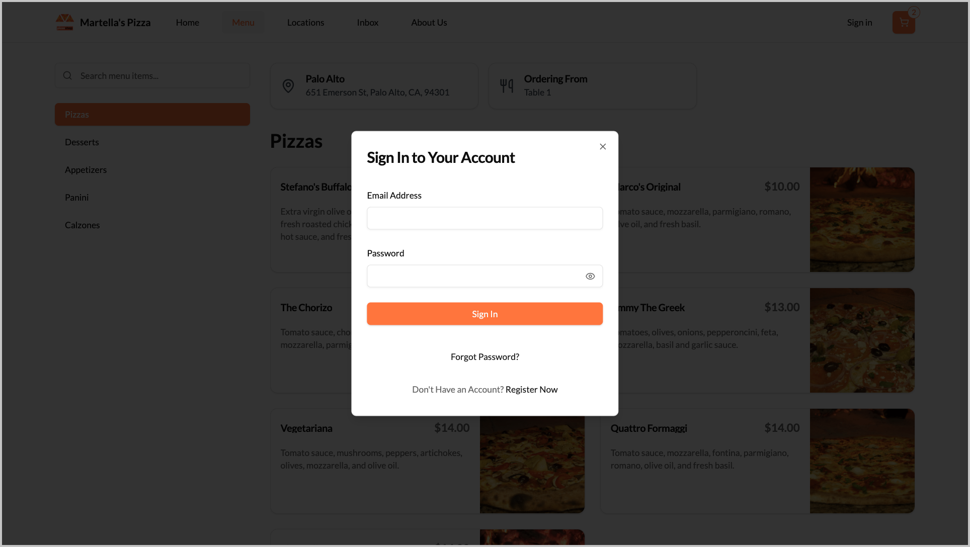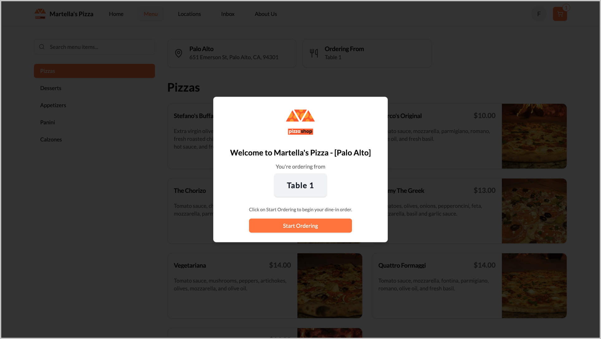 Once scanned, you’ll be redirected to the restaurant’s Webstore. Tap Start Ordering to begin your dine-in order.