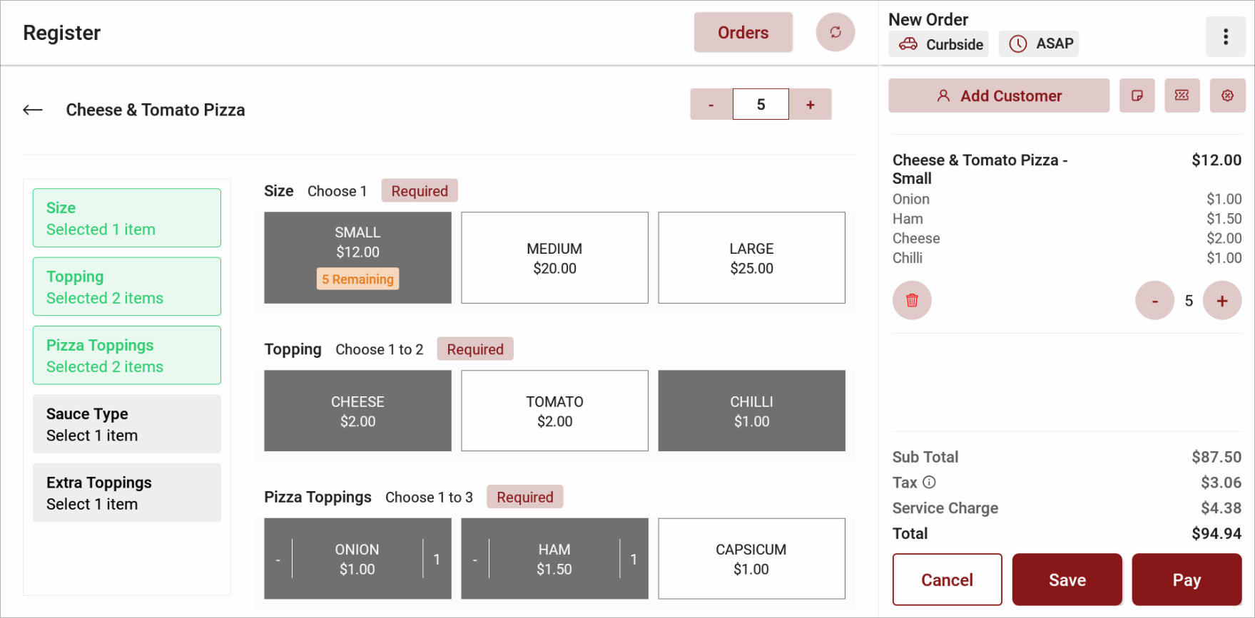 Once confirmed, the new quantity is instantly reflected in the order list. All dependent totals, such as item subtotal and order total, are recalculated in real time.